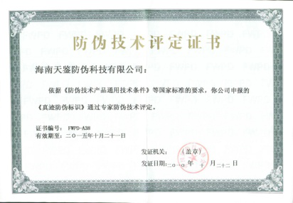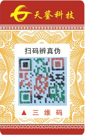 Tianjian structural 3D code: :The anti-counterfeiting elements and information collection are randomly carved on a proprietary structural material in a physical manner, which make different parts are randomly presented with different depths and different color structural features. It is structural, unique, three-dimensional, non-reproducible, physical, and difficult to reproduce. Consumers can verify the authenticity of Tianjian structural 3D code through mobile phone scanning, and realize the interaction of product information and digitalization.