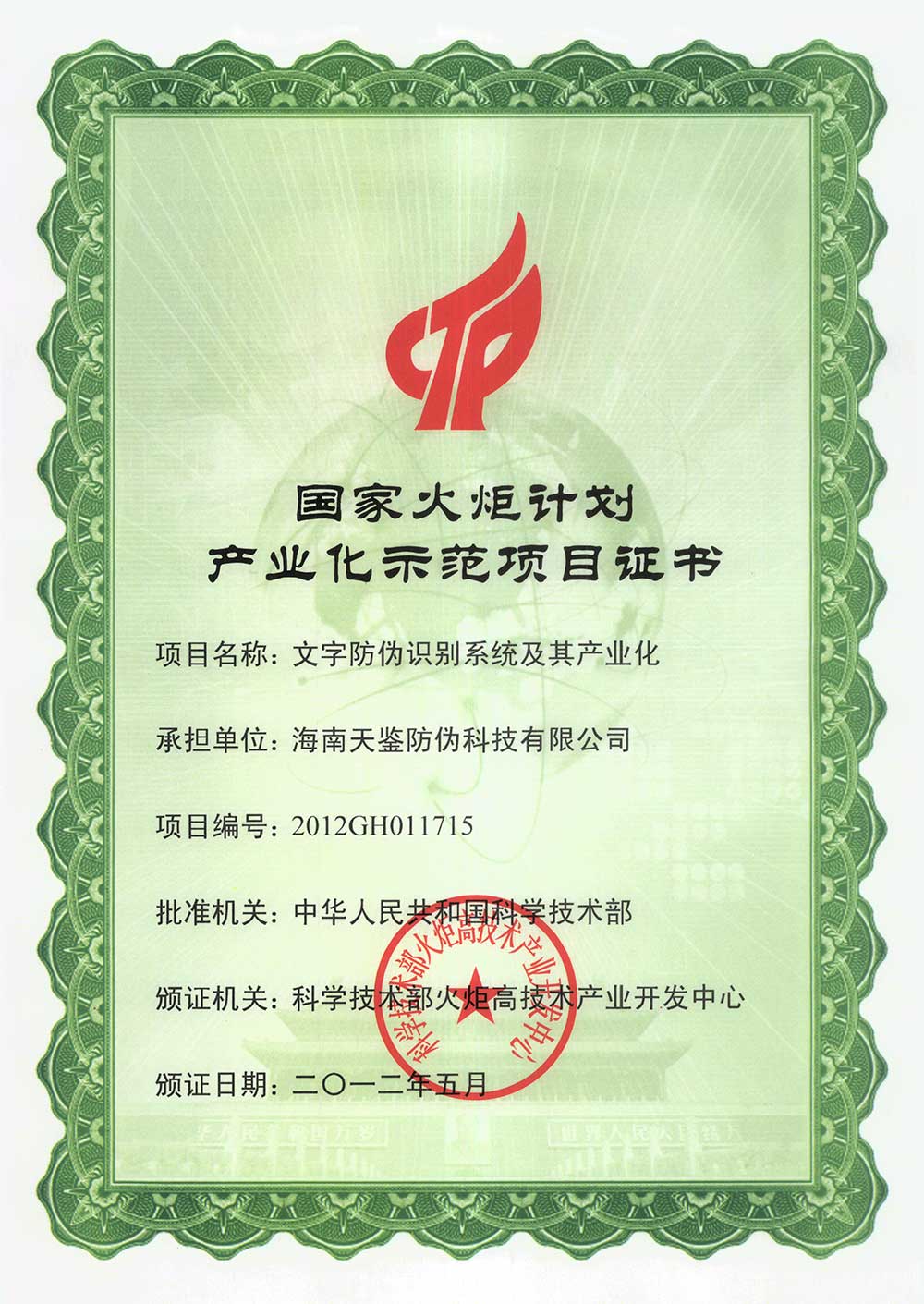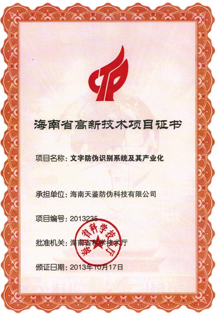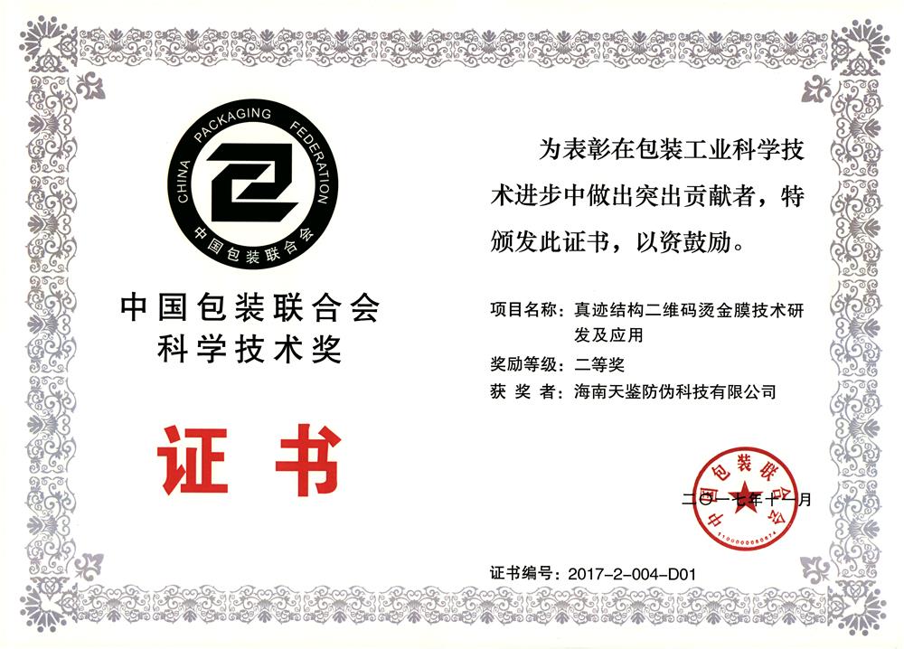 海南天鑒擁有國家唯一的“三維碼工程技術研究院”—海南省天鑒三維碼工程技術研究院。擁有以“結構三維碼”技術為支撐的200多項專利群,每年新申請專利成倍遞增。多次承擔國家科技部中小企業技術創新項目、國家火炬計劃項目以及海南省重大科技項目、海南省重點科技項目等,項目多次被認定為海南省高新技術項目,獲得“海南省科技進步二等獎”、“海口市科技進步一等獎”、“海口市專利優秀獎”等殊榮,企業被認定為“國家級高新技術企業”、“中國防偽行業優秀企業”、“海南省創新型企業”等。公司與北京印刷學院等多所知名院校建立了長期的產學研戰略合作關系。